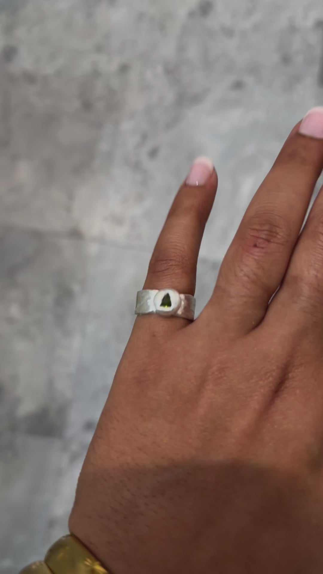 Add a touch of quirkiness and fun to your jewelry collection with our Unique Silver Clay Ring. Handmade with 999 fine silver art clay, each ring is one-of-a-kind and this one features a green triangle cz stone. Embrace its imperfections and make a statement. (Organically and playfully made - no two are alike!)