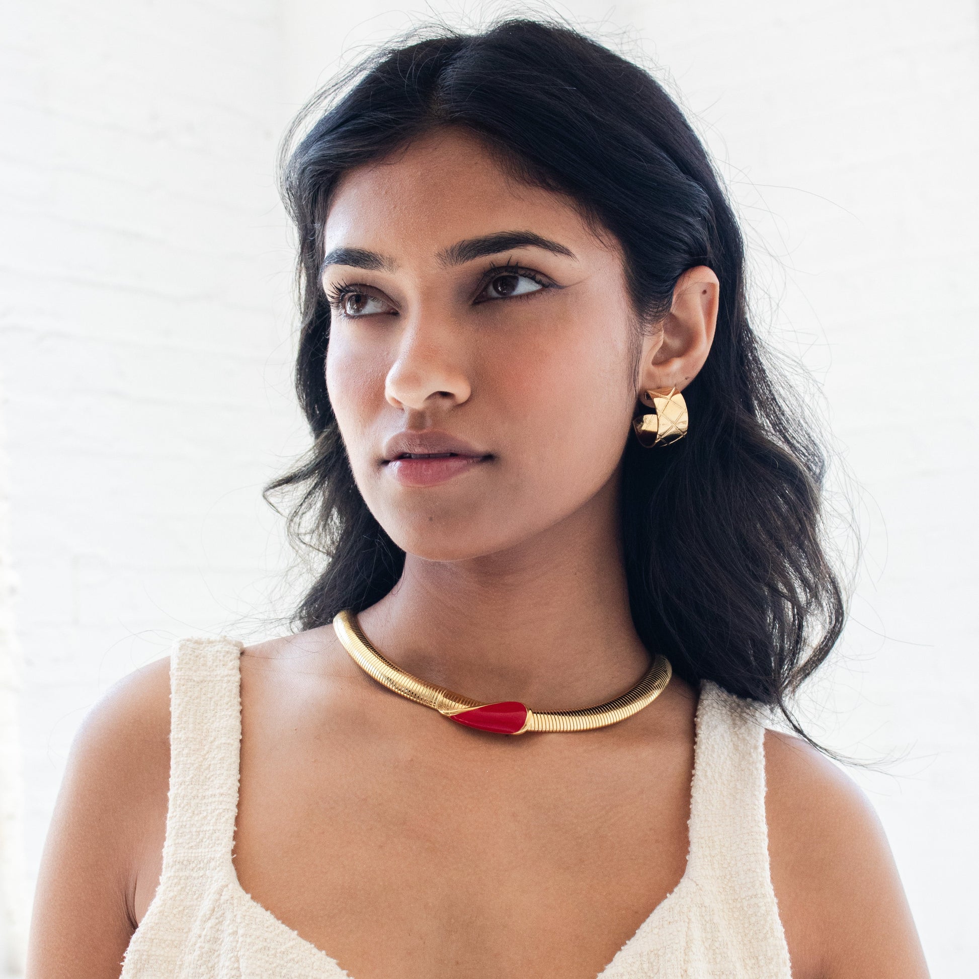 Vintage Avon Gold Tone Hoop Quilted Earrings