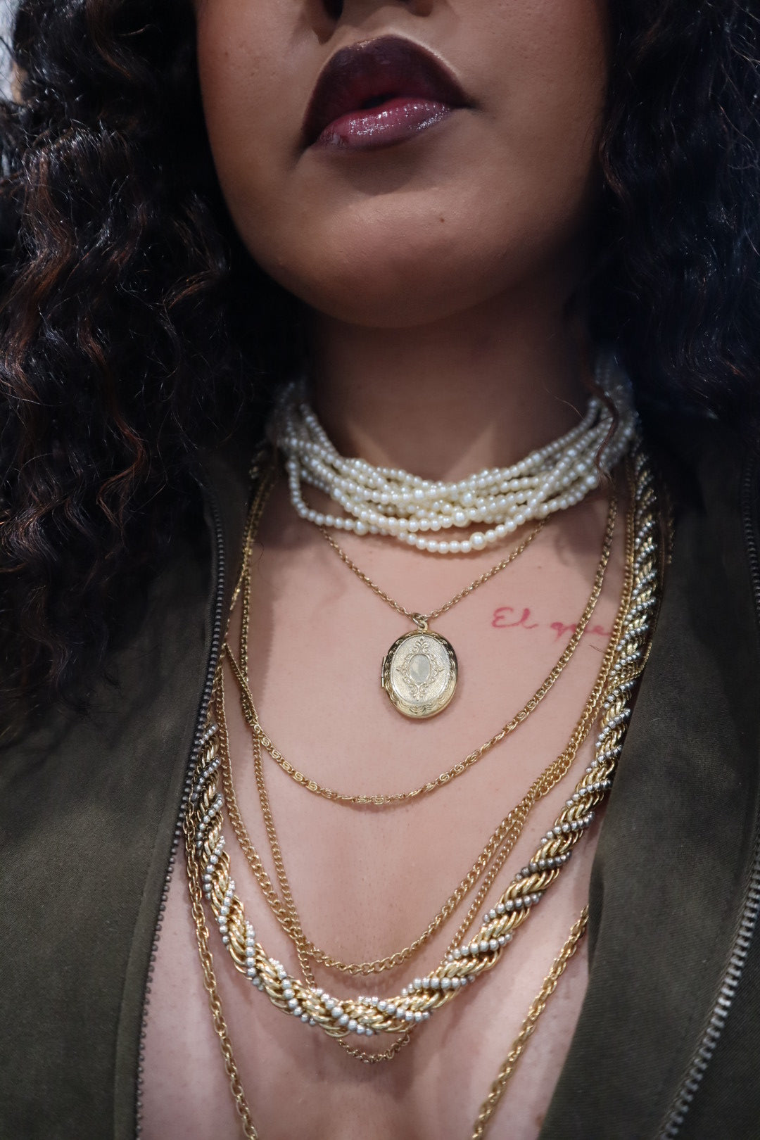 Vintage Multi-Chain Locket Gold Tone Necklace